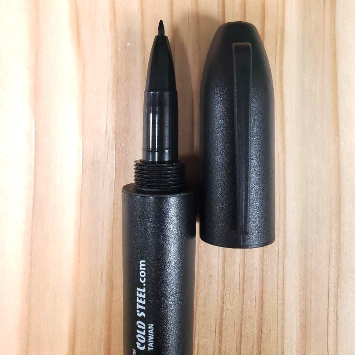 They say "the pen is mightier than the sword" - and Cold Steel makes some mighty swords, but the Pocket Shark makes for some clever competition. It's the biggest, baddest, permanent marker around! The Pocket Shark is made from a high impact polymer and features walls that are 4 times thicker than conventional markers. This means it's built for impact and will survive the meanest blows and roughest treatment imaginable. Plus, the screw on cap will stay in place and won't pop off like a regular marker and leak all over your clothes. Clip it to a shirt or coat pocket, or carry in your purse, pack or brief case. Theres simply no excuse not to own one!